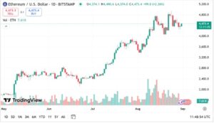 The Ethereum Price for today stands at $4,455.69 and is up 1.67% over the previous 24 hours, with it having a market capitalization of $537.89 billion. As evidence of how market performance can differ even among the most established projects, its trading volume for the day has dropped by almost 50% to $24.1 billion.