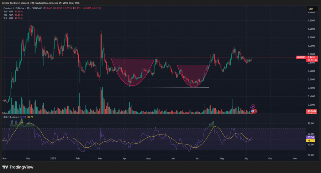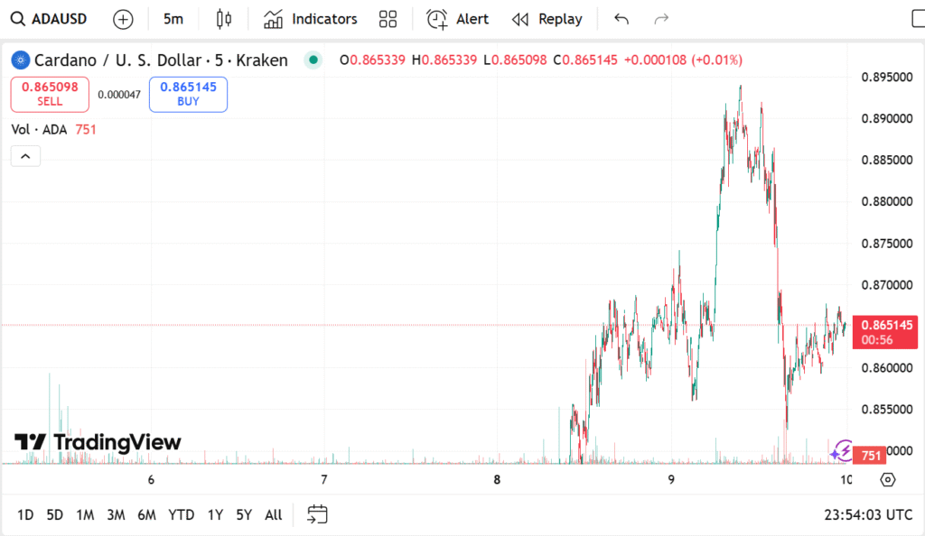 Cardano news continues to capture interest as the ecosystem moves past its Chang governance changeover, meanwhile Cardano price today at $0.8650 with a $30.79B market capitalization and $2B trading volume, 47.7% higher in a 24-hour timeframe.