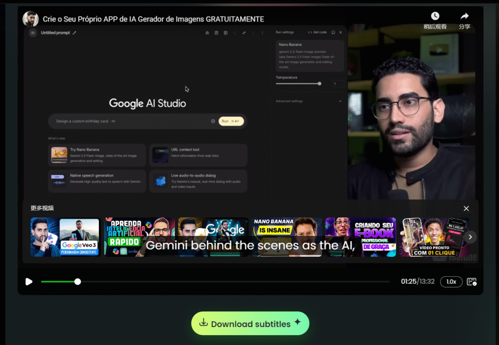 4. Subtitles and Downloads: Translated subtitles are instantly available and can be downloaded as SRT files, making them easy to repurpose for analysis, archiving, or sharing within teams.