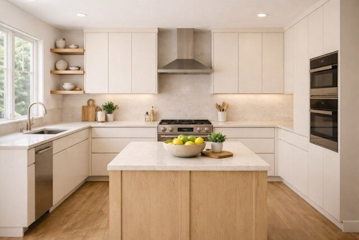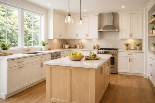 Cabinet choices in 2026 are being shaped by how they interact with light. Warmer whites, lighter woods, and matte finishes help reflect light softly instead of creating glare.