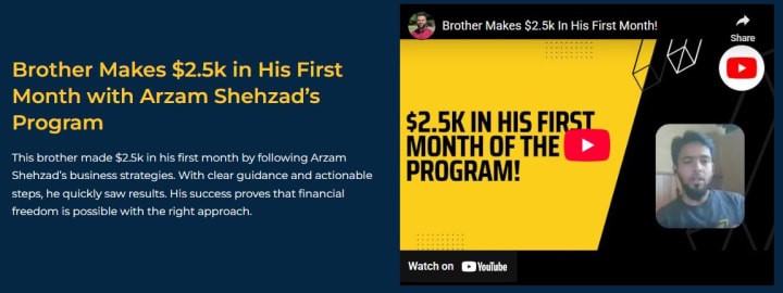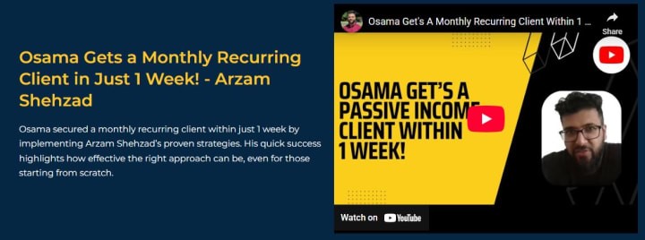 What makes it stand out is its simplicity. Everything is broken down into clear, actionable steps. The lessons cover how to find clients, build systems, and manage operations efficiently. Arzam doesn’t overwhelm his students with theory; he focuses on implementation.