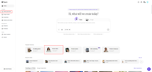 Begin by logging in to Pippit and opening “Video generator” from the left-hand menu. From the Popular tools section, select “Avatar video” to work with detailed avatar lip sync. This setup makes it easy to sync voiceovers with avatars while preparing for precise edits.