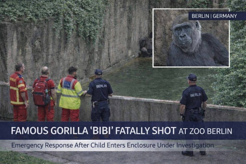Berlin, Germany — March 24, 2026 — A shocking event has come to light at Zoo Berlin, where a female western lowland gorilla named Bibi was shot and killed after a young child fell into her enclosure. The details have not been officially confirmed, but information from internal sources has begun circulating, as both the zoo administration and authorities have chosen to remain silent while an investigation is ongoing.